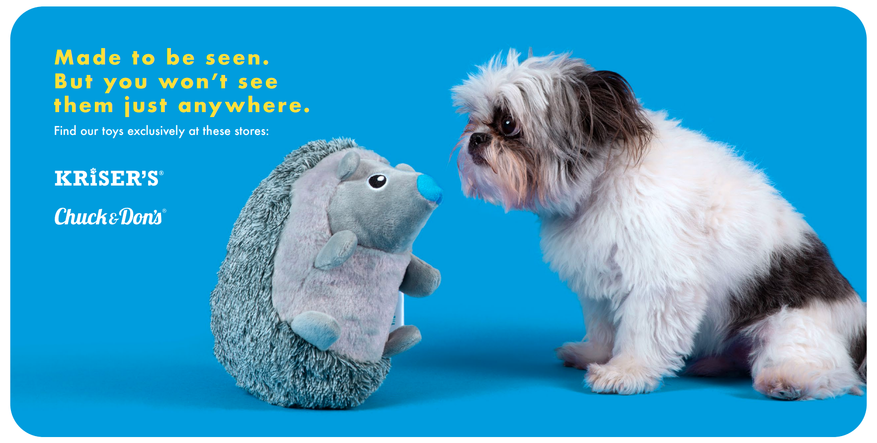 While your dog's unbridled enthusiasm may lead you to believe they see the world through rose-clored glasses, they really see in shades of gray, blue, and yellow. That's why we created Attachment Theory - a line of plush toys designed to literally stand out from the crowd.